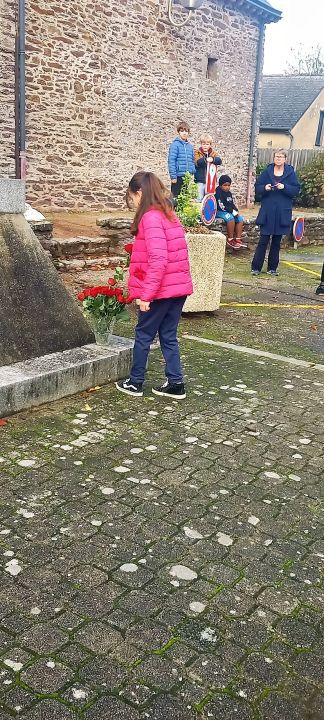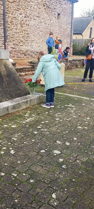 Les élèves ont ensuite déposé une rose à l'annonce des noms des soldats originaires du Verger figurants sur le monument aux morts.